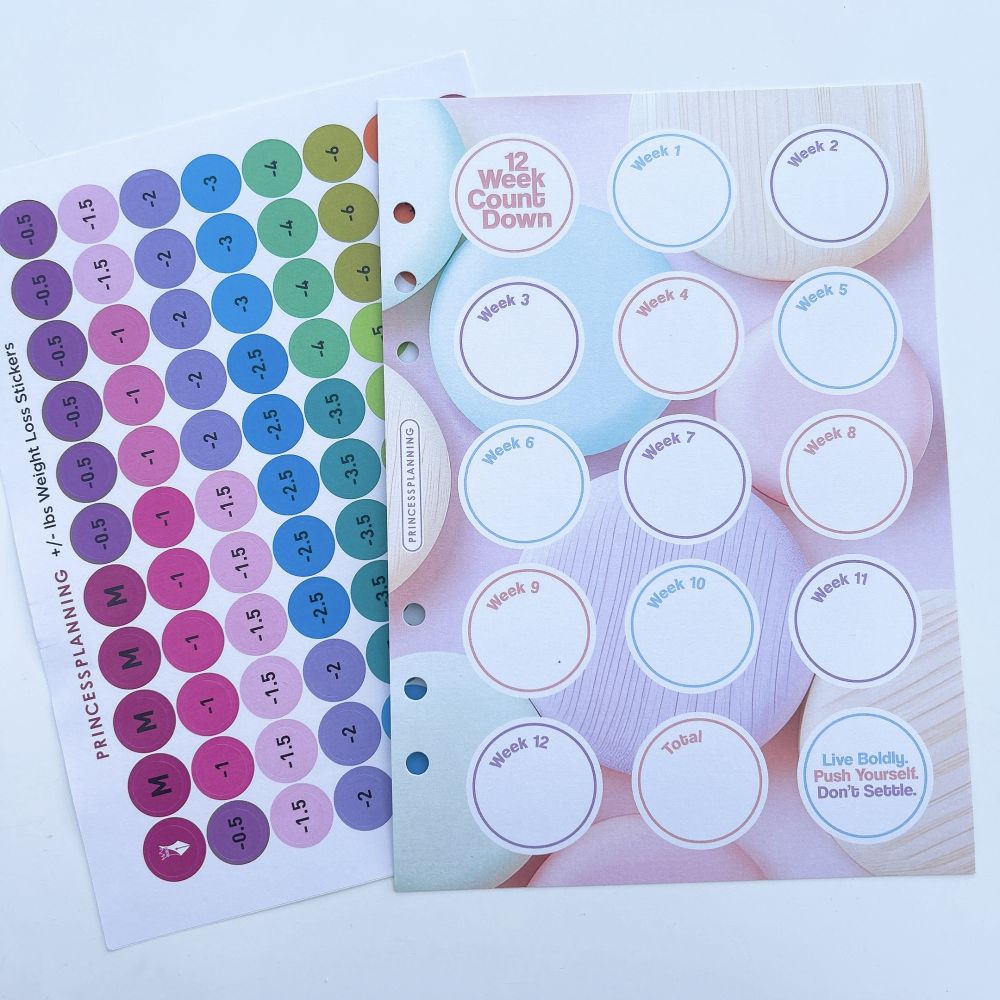 12 WEEK COUNTDOWN INSERT WITH STICKERS- Professionally printed - A5 size thick card. With stickers to pop your results on each week.