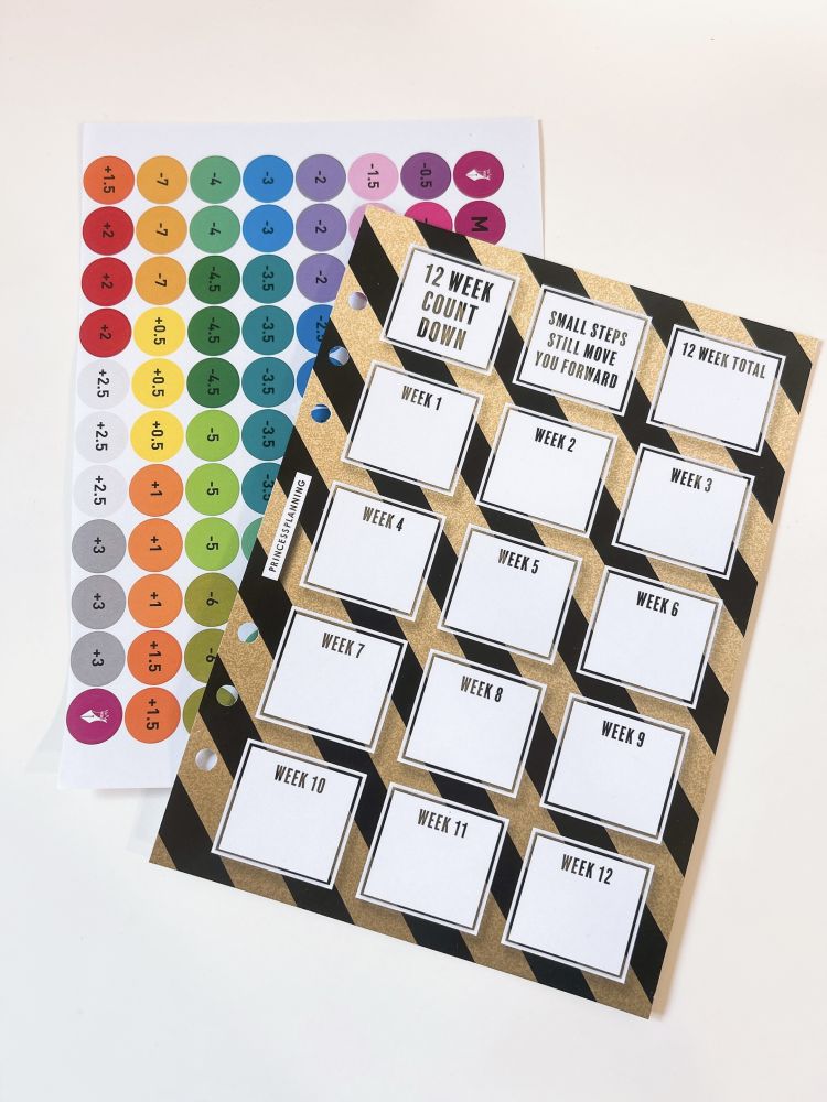 12 WEEK COUNTDOWN INSERT WITH STICKERS- Professionally printed -