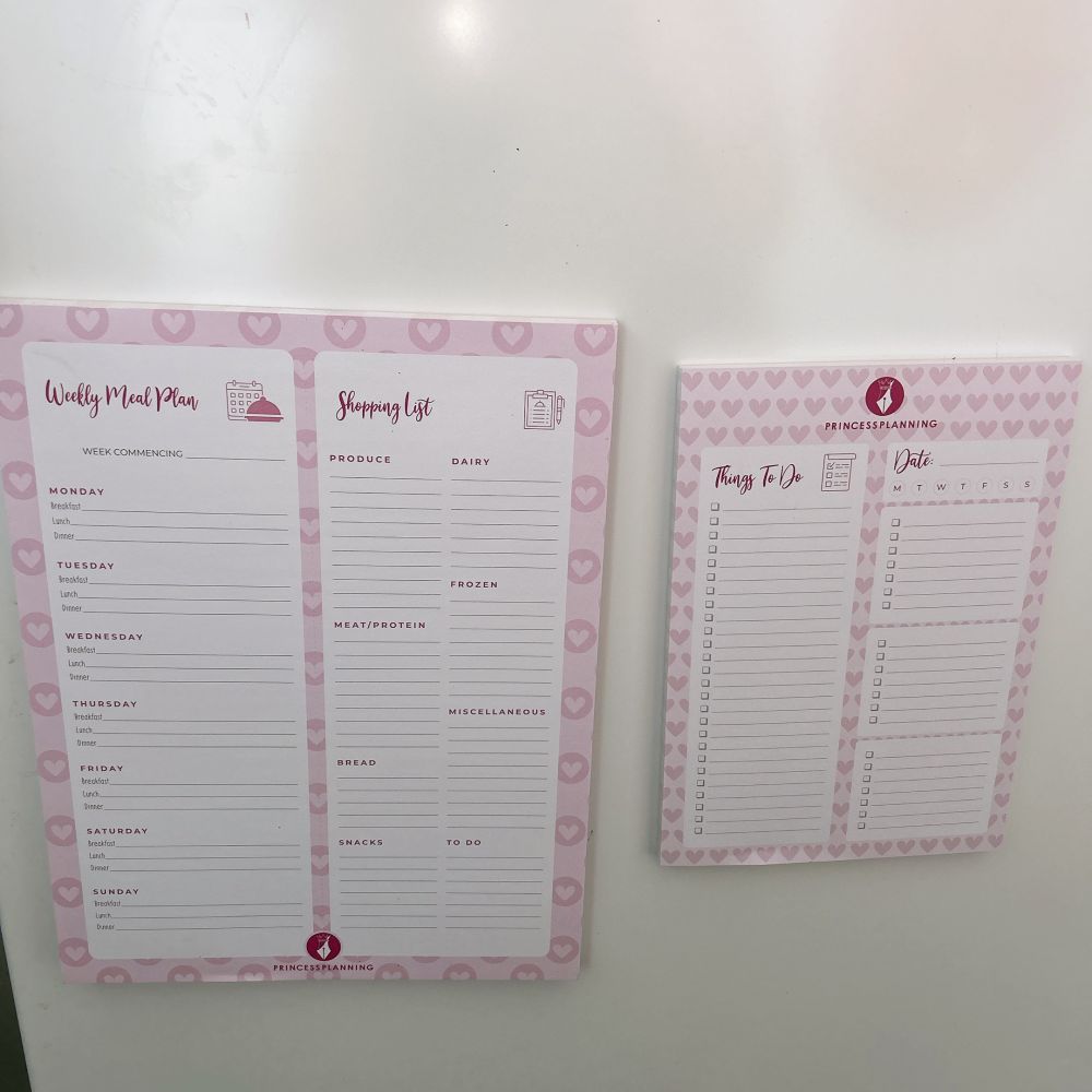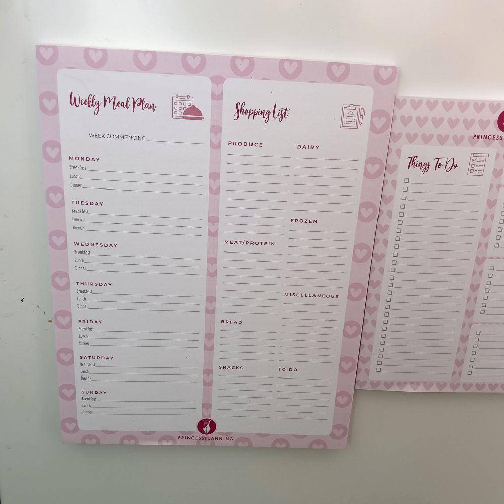 Magnetic meal planning pad! The back of this product is fully magnetic meaning you can pop it on the front of your fridge or if you have an integrated fridge then it sticks to anything magnetic, like your microwave, white board etc.
