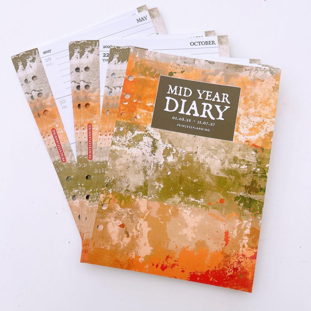 "Mid-year/Academic Dated Diary inserts" are available from August 2026 to July 2027. They are made of premium, high-quality paper and hole-punched to fit into your Grande planners.