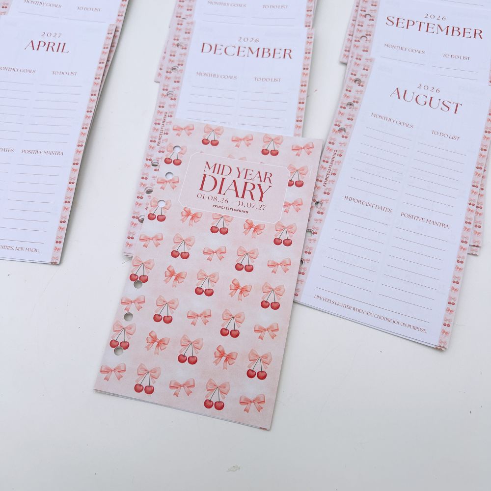 This is a mid-year/academic-dated diary insert for the 26/27 period, printed on premium, high-quality paper. The diary has already been hole-punched to fit into your Petite planners.