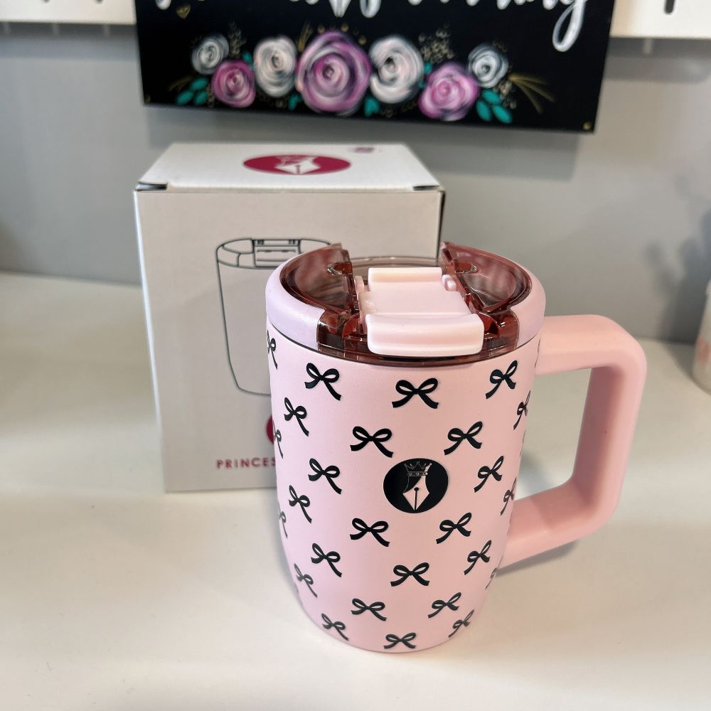 Pink & Black Bow Reusable Insulated Travel Coffee Cup Mug 450ml