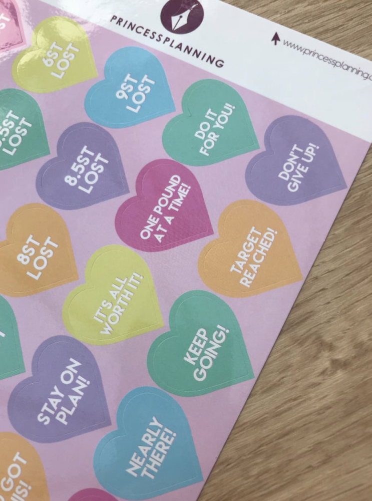 Celebrate every step of your journey with these stylish milestone stickers! Designed in soft pink tones, this set includes clear stone-by-stone achievements (½ stone, 1 stone, 1½ stone, 2 stone, and beyond) along with uplifting quotes to keep you motivated. Perfect for planners, journals, or progress trackers – they help you mark your success and stay inspired along the way.